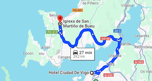 * Hotel Ciudad de Vigo --- Iglesia de San Martiño de Bueu. Horario por confirmar.